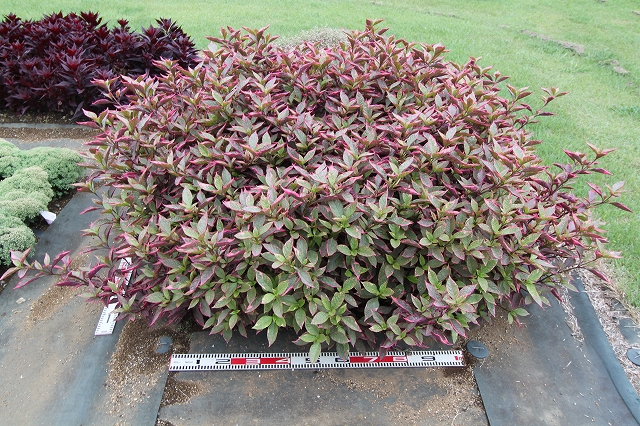 極めて旺盛に生育するアルテルナンテラ。出品申請書では草丈・株幅60~80cmと記載されていましたが、審査ではそれを上回る伸びを見せました。株元まで葉が保たれるため草姿が美しく、暑さや直射日光にも強いことから、公園や大規模花壇での活用に特に有望です。