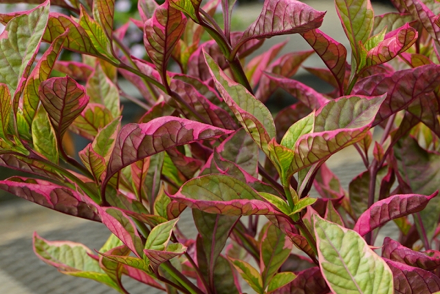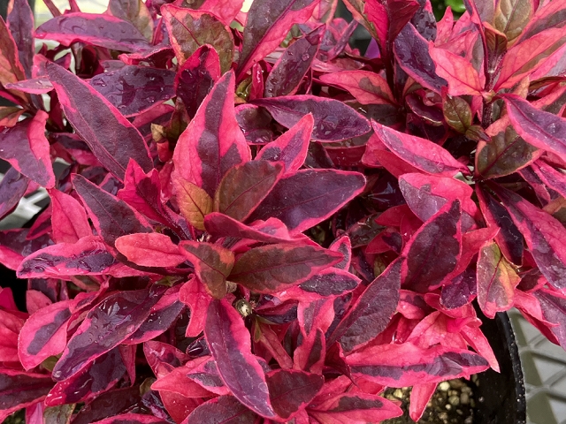 1 トリカラーの美しいカラーリーフ。季節ごとに葉色が変化し、春から晩秋にかけて長く楽しめる。